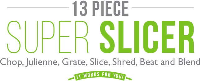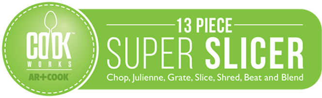 Cook Works 13 Piece Super Slicer blades are very sharp and can be very dangerous if not used properly. Handle the blades with care when you are using this product. Always use the hand guard to ensure safe operation. Use extreme caution when washing the blades as they can cut you easily. Keep all components out of the reach from children at all times.