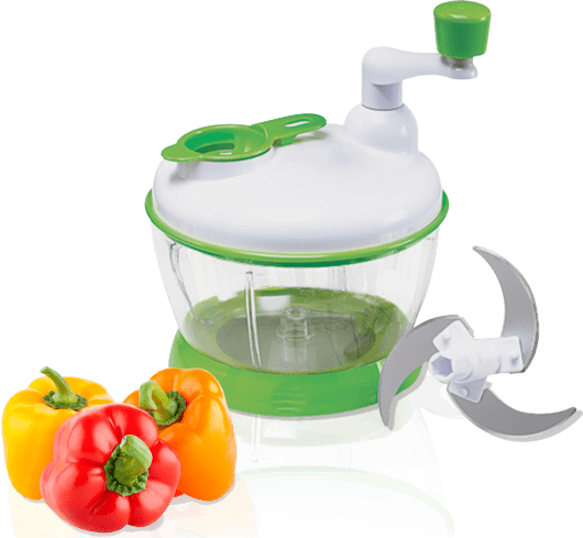 The triple stainless steel blade chops and dices fruits and vegetables effortlessly. The three tiered blades are strategically placed for perfect and even chopping every time.