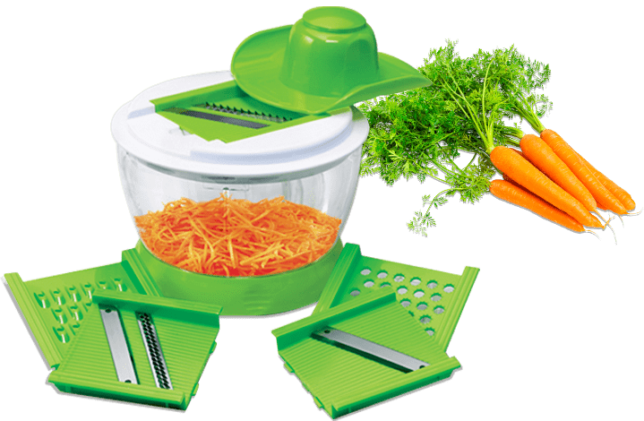 The slicing, julienne and grate blades are a quick and efficient way to prepare tasty crudites, evenly slice vegetables, shred cheese and more.